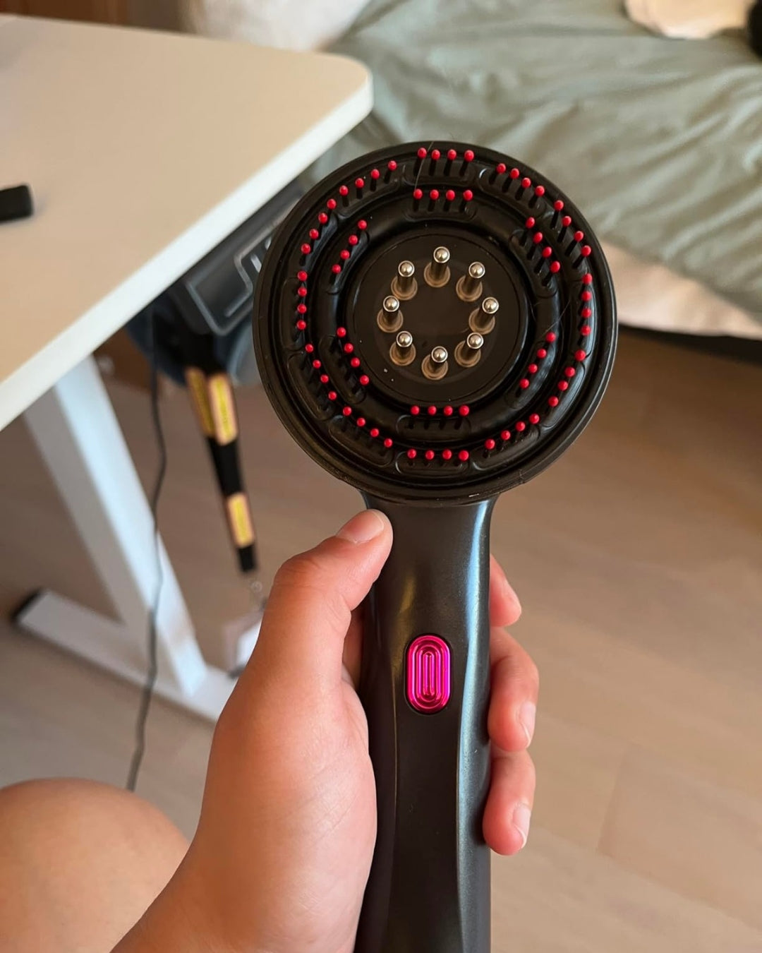 El masaje eléctrico estimula el flujo de oxígeno y nutrientes hacia la raíz del cabello.